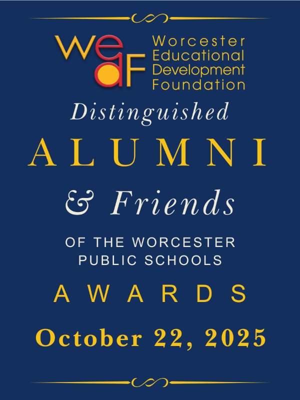 The Worcester Educational Development Foundation cordially invites you to celebrate the induction of our 14th class of Distinguished Alumni & Friends of the Worcester Public Schools at a banquet in their honor.
