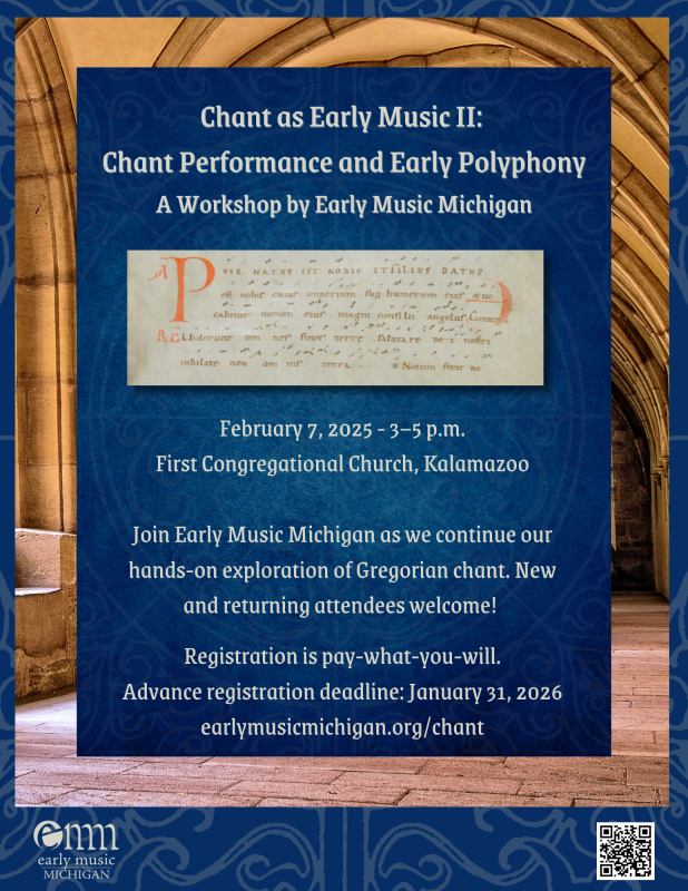 Join Early Music Michigan as we continue our hands-on exploration of Gregorian Chant in “Chant as Early Music II.”