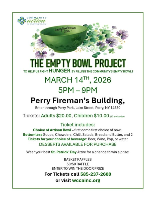 Help fight HUNGER by filling the community's empty bowls in Wyoming County.