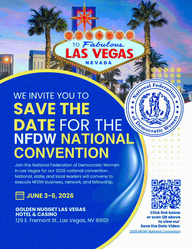 Join Democratic women from across the nation for the 2026 National Federation of Democratic Women (NFDW) Convention — a celebration of leadership, unity, and action! This year’s convention will bring together grassroots organizers, elected officials, party leaders, and passionate advocates who are shaping the future of our democracy.