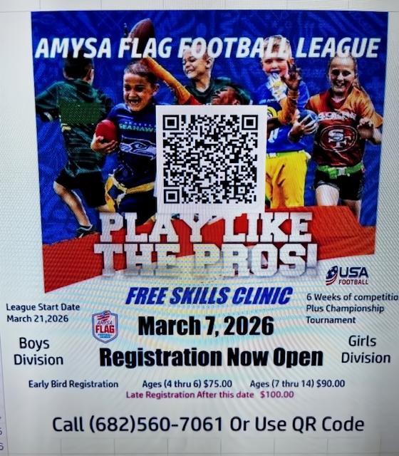AMYSA Spring Flag Football League Ages 7 thru Middleschool.