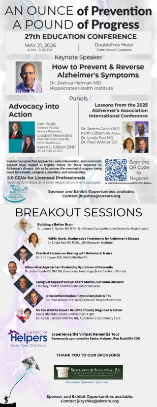 The ACC Annual Educational Conference builds on more than 25 years of excellence, bringing together leading experts to share cutting-edge knowledge, practical strategies, and compassionate insights. Each year, hundreds of family and professional caregivers gather to gain tools that enhance the quality of life for individuals living with Alzheimer’s disease, dementia, and related neurocognitive disorders.