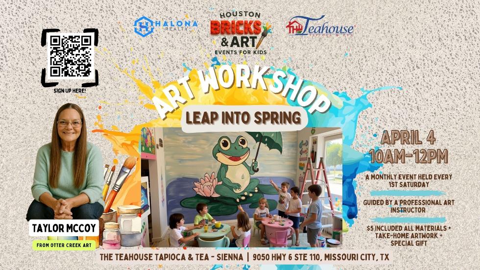 Join us on Saturday, April 4th for our monthly kids art workshop featuring Rainy Day Frog — where young artists will paint their own whimsical frog holding an umbrella on a lily pad, creating a cheerful, rainy-day canvas masterpiece to take home!