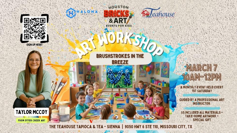 Join us on Saturday, March 7th for our monthly kids art workshop featuring Brushstrokes in the Breeze — where young creators will paint vibrant wind-swept landscapes on canvas, bringing home a stunning piece of art inspired by nature's gentle flow.