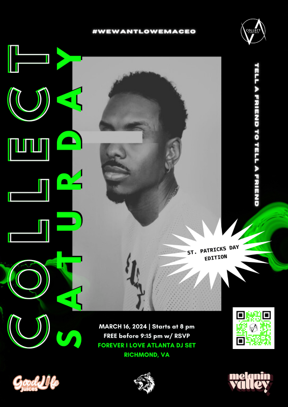 You are cordially invited to the start of Collect Saturday 2024! We are excited to introduce our new venture Melanin Valley, an unparalleled Artist Residency and Exhibition Space meticulously crafted to celebrate ingenuity, elevate community, and redefine the essence of local excellence. Nestled within a sprawling 9,000+ square foot compound in the vibrant heart of Richmond, VA.
