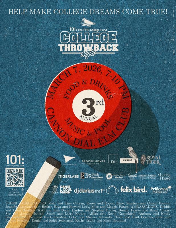 The 101: Fund Presents: College Throwback Night 2026! An evening of (old) school spirit in celebration of our mission to support recent Princeton High School graduates who are well prepared for college, but cannot afford to attend.
