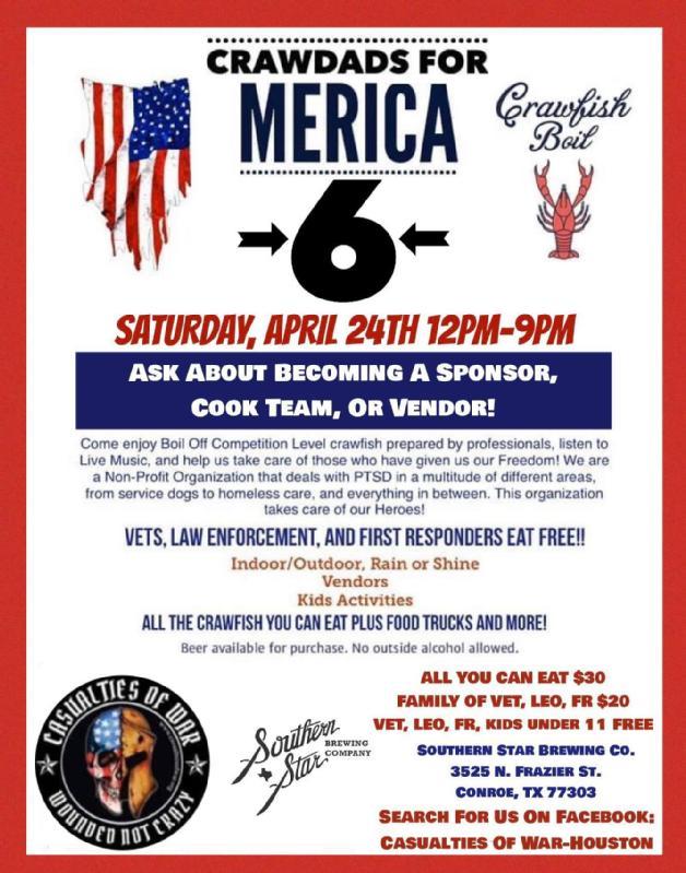 Come join us as we raise money for the Non-Profit Organization, Casualties of War-Houston, benefitting Veterans, Law Enforcement, First Responders, and their families.