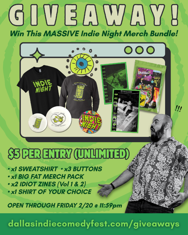 DICF is presented by Indie Lab Creative, a Dallas-based 501(c)(3) nonprofit supporting the city's creative and comedic community. All Giveaway proceeds directly support ILC and DICF operations.