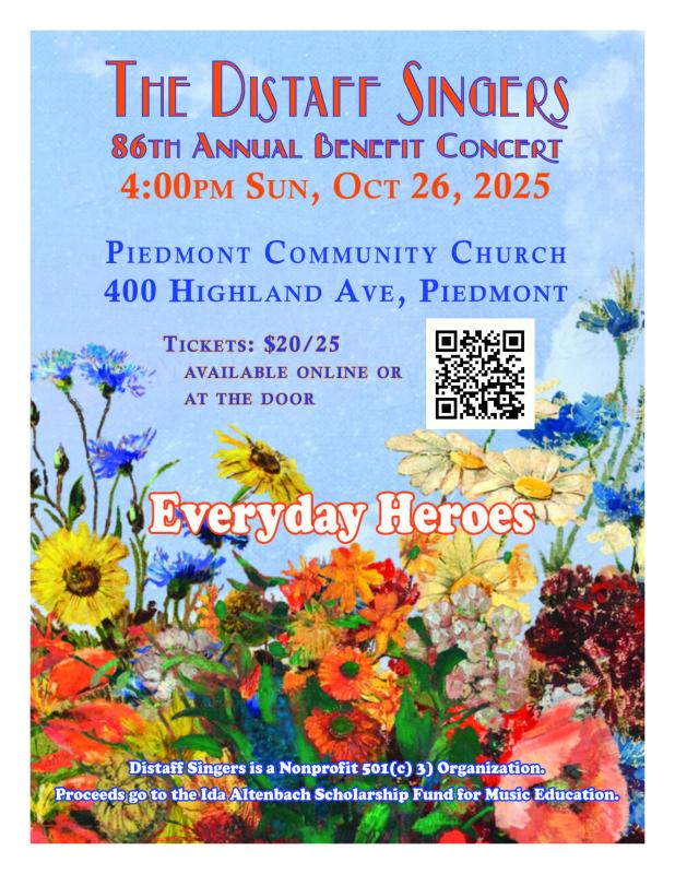 The Distaff Singers is a women’s choral group in its 86th season, bringing music to the East Bay community. Concert proceeds benefit the Ida Altenbach Scholarship fund which supports youth music education through our grant program.