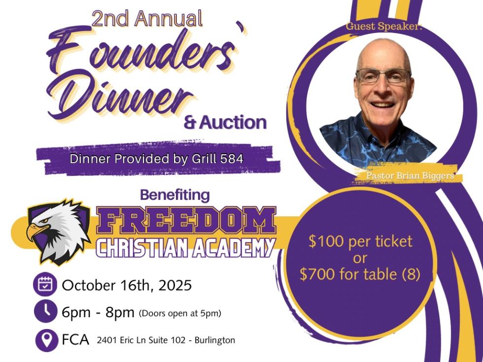 The Freedom Christian Academy's 2nd Annual Founders' Dinner Fundraiser is sure to be a memorable evening of community, inspiration, and support.