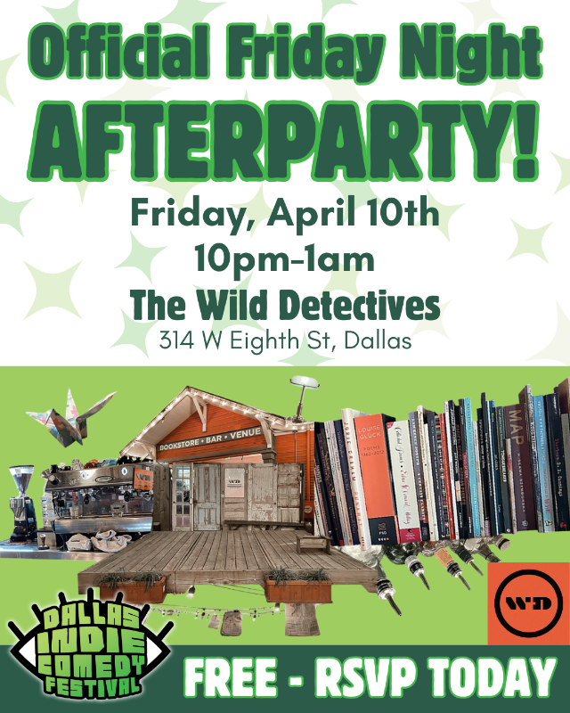 Keep the laughs going after the shows with the official Friday Night Afterparty for Dallas Indie Comedy Fest at The Wild Detectives!