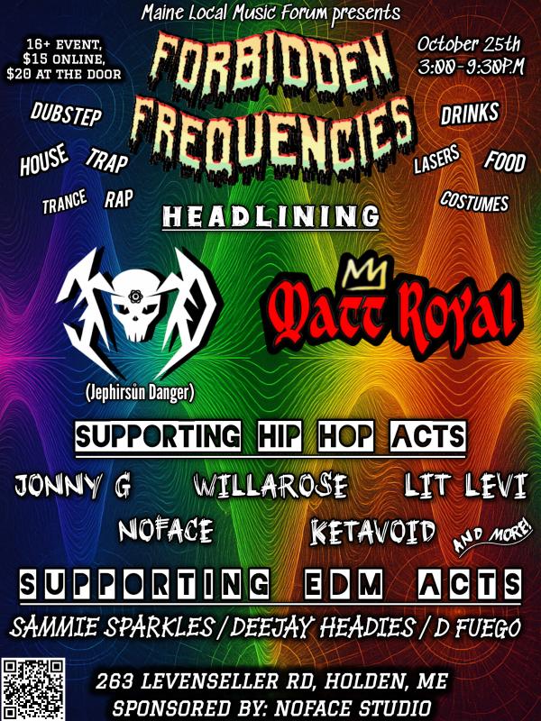 On Saturday, October 25th, the Holden Snowmobile Club will be transformed into a full-scale venue for Forbidden Frequencies — a Halloween-themed showcase bringing hip hop and EDM together for one night only in the Greater Bangor area.