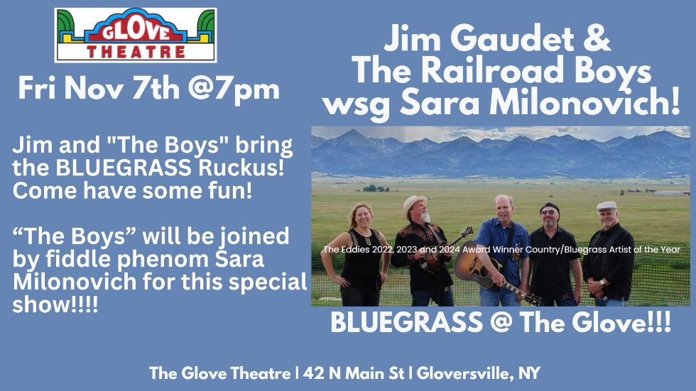 The Glove Theatre's 518 Concert Series is thrilled to welcome Jim Gaudet and the Railroad Boys -- The Eddies 2022, 2023, 2024 & 2025 Award Winner Bluegrass Artist of the Year!!!