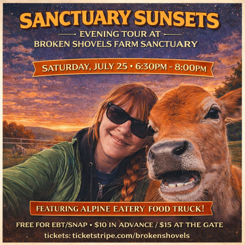 Broken Shovels Farm Sanctuary is a safe place for animals rescued from abuse, neglect, slaughter, and exploitation. We do not breed or sell animals.