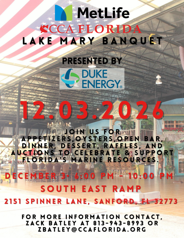 Includes 2 corporate tables of 10, appetizers, oysters, dinner, dessert, and open bar for 20, 20 one-year CCA memberships, priority seating, premium sponsor gifts, and two framed sponsor prints. Title sponsorship also includes 2024 “Sponsor Name” CCA Lake Mary Banquet and Auction status on all marketing materials, prominent display of corporate identity on event publications including “Save the Date”/invitation mailers and promotions, logo in the program, and an ad on the back cover of the program.