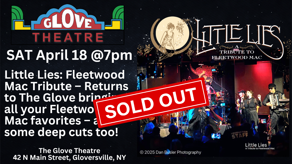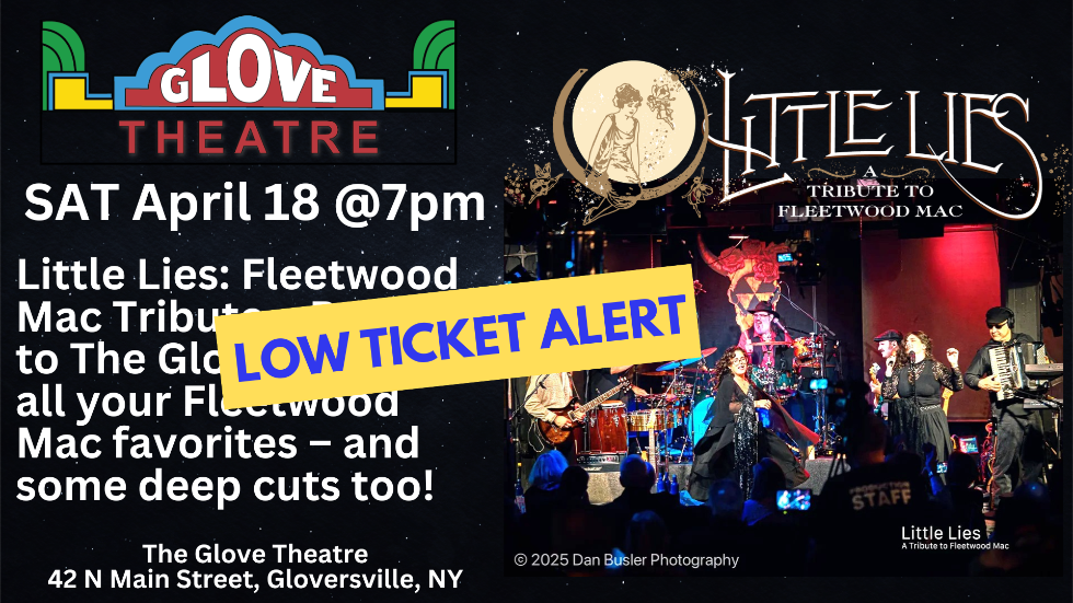 The Glove Theatre can't wait to welcome back Little Lies: A Tribute to Fleetwood Mac! This will be their third year performing at The Glove! They wowed us last May with a powerhouse performance and a sell-out show! Do not wait to buy your tickets -- these tickets will sell fast!