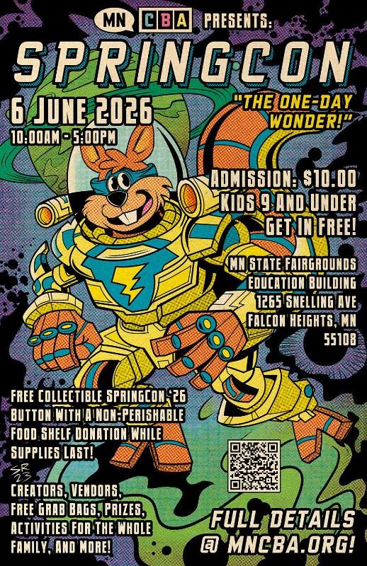 FREE collectible SpringCon '26 button with a non-perishable food shelf donation, while supplies last!
