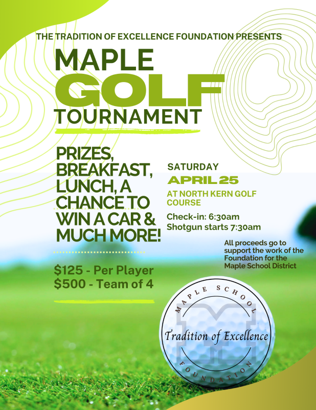All proceeds from the event go towards the work of the Tradition of Excellence Foundation which directly benefits the students of The Maple School District. The Foundations primary focus is to enhance the Maple campus grounds and learning spaces above and beyond the traditional scope of school facility projects.