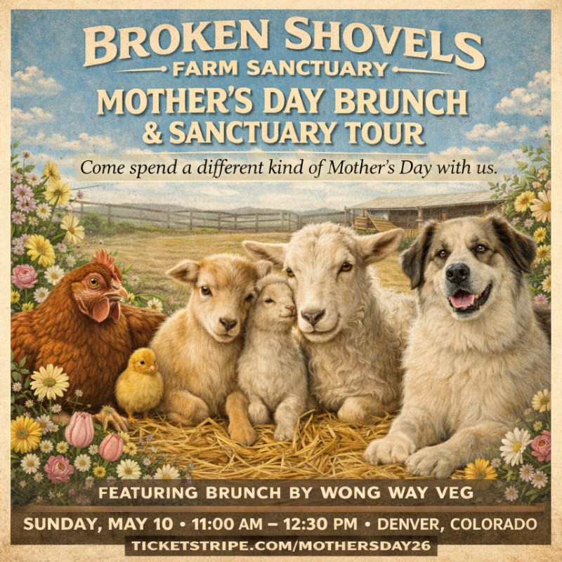 Join us for a beautiful morning at Broken Shovels Farm Sanctuary, surrounded by rescued animals, good food, and meaningful connection. Whether you’re celebrating a mom, bringing your family, or taking time for yourself, this is a day designed to feel joyful, grounding, and memorable.