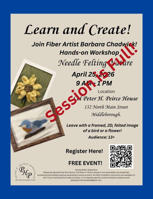 Please be advised that the historic Col Peter H. Peirce House is not accessible via wheelchair.