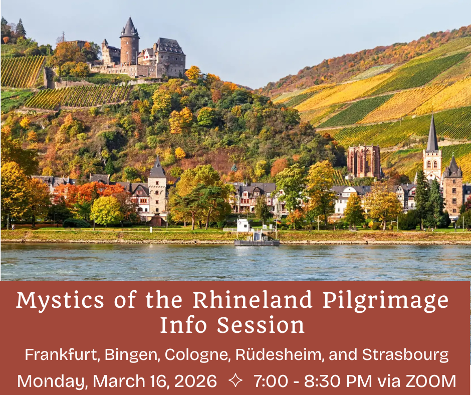 Center for Spiritual Wisdom is pleased to announce our upcoming pilgrimage: Mystics of the Rhineland, Fall 2026. Join us for a free information session March 16 at 7:00 PM Eastern on Zoom.