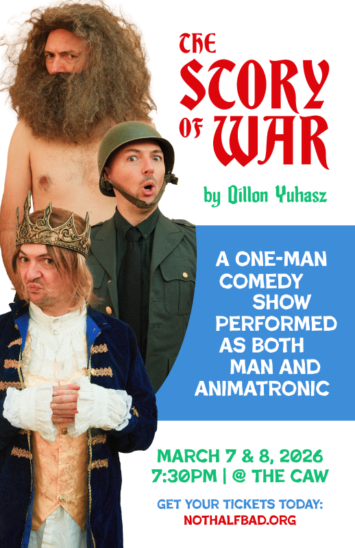 When Wathel Rogers, the inventor of animatronics, separated from the Disney company, he set out to create the greatest animatronic show of all time. His creation told the history of warfare, and he called it The Story of War. This is that show. Dillon Yuhasz takes you on a journey from the stone age to modern times as both man and animatronic robot in this strange tale of violence, greed, and dancing pirates.