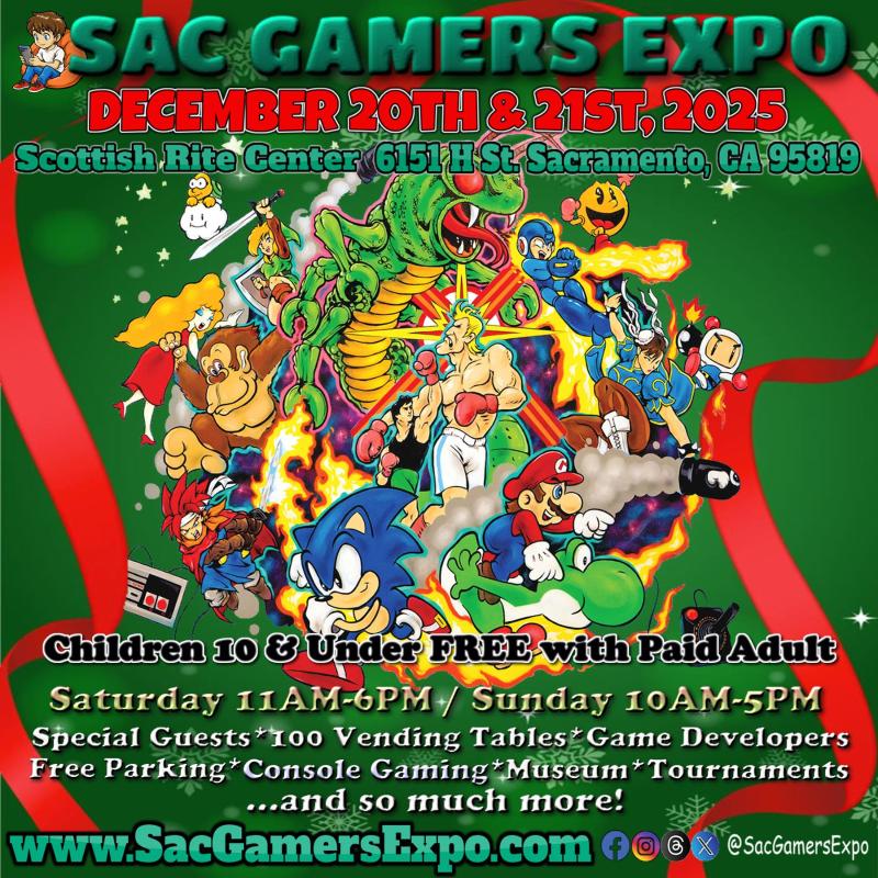SAC GAMERS EXPO! We are a video game convention founded in 2015, created by gamers for gamers. Our show features special guests, game vendors and artists, game developers, tournaments, free to play games, a retro museum, arcade, and so much more! Sac Gamers Expo is a family oriented event for all levels of gamers!