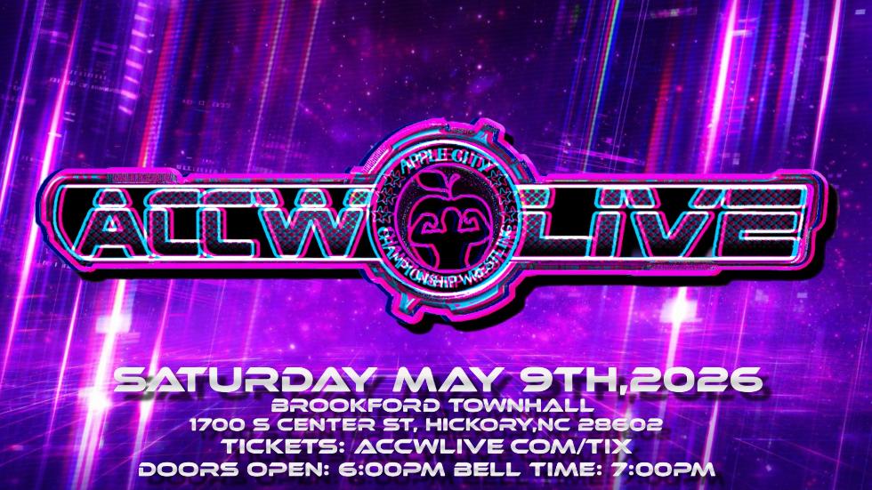Get ready for another electrifying night of ACCW LIVE professional wrestling action as we return to our home at the Brookford Auditorium on Saturday, May 9th, 2026!