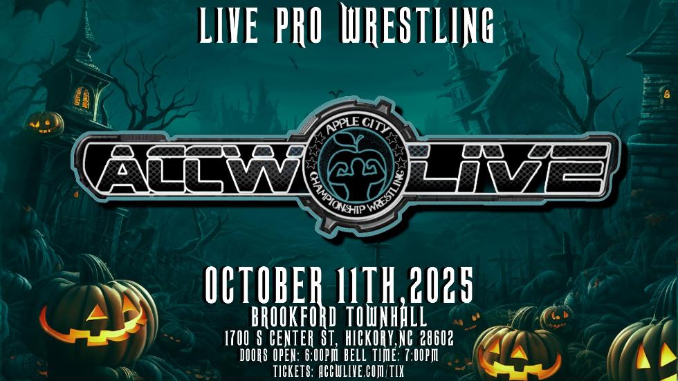 This October, the ring gets haunted! Join us for a spine-tingling night of family-friendly pro wrestling as ACCW brings the thrills, chills, and body slams back to Brookford Town Hall in Hickory!