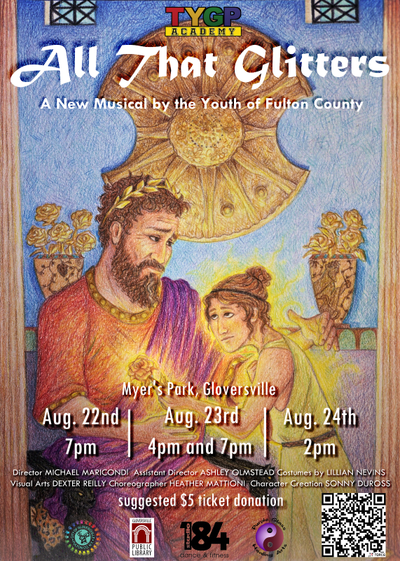 Throughout the TYGP Summer Academy, our Rising Stars have been trained in acting, singing, dance, voice and speech, vocal technique and performance, design, writing, music composition, and more. Our dedicated team of professional, working performing artists has guided them through the process of discovering their inner artist, working together, having fun, and, most importantly of all, trusting their gut! We are beyond pleased to present All That Glitters as the next in a growing line of unique and original musicals created, produced, and performed by the incredibly talented Youth of Fulton County!