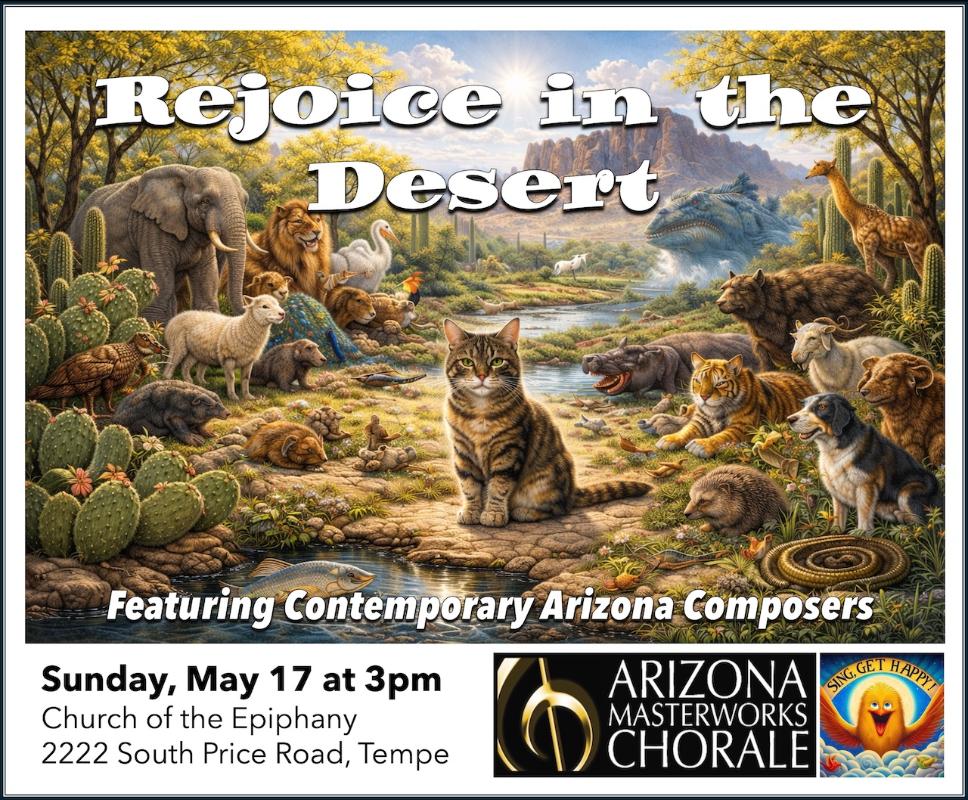 The Arizona Masterworks Chorale's season concludes with Benjamin Britten's "Neo-Classical" (1943) cantata Rejoice in the Lamb and a celebration of contemporary modern masterworks by Arizona-based composers including Kira Zeeman Rugen, Michael Hegeman, Michael McCabe, Paul Sautter, and our own Darren Herring.