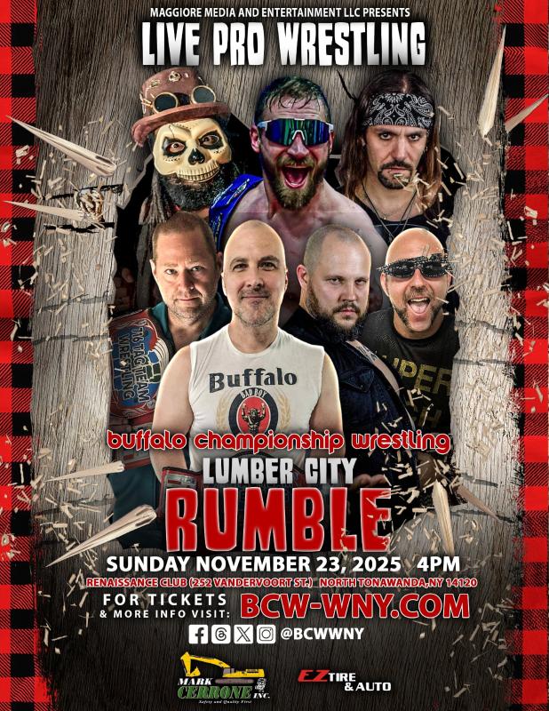On Sunday, November 23rd Buffalo Championship Wrestling returns to the Renaissance Club in North Tonawanda with the Lumber City Rumble! Join Western New York's hometown live pro wrestling for a great afternoon of family-friendly, local and live professional wrestling action.