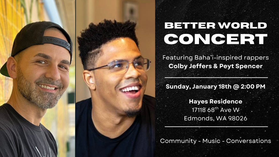 Hosted by Baha'i-inspired, changemaker rappers, Colby Jeffers and Peyt Spencer!
