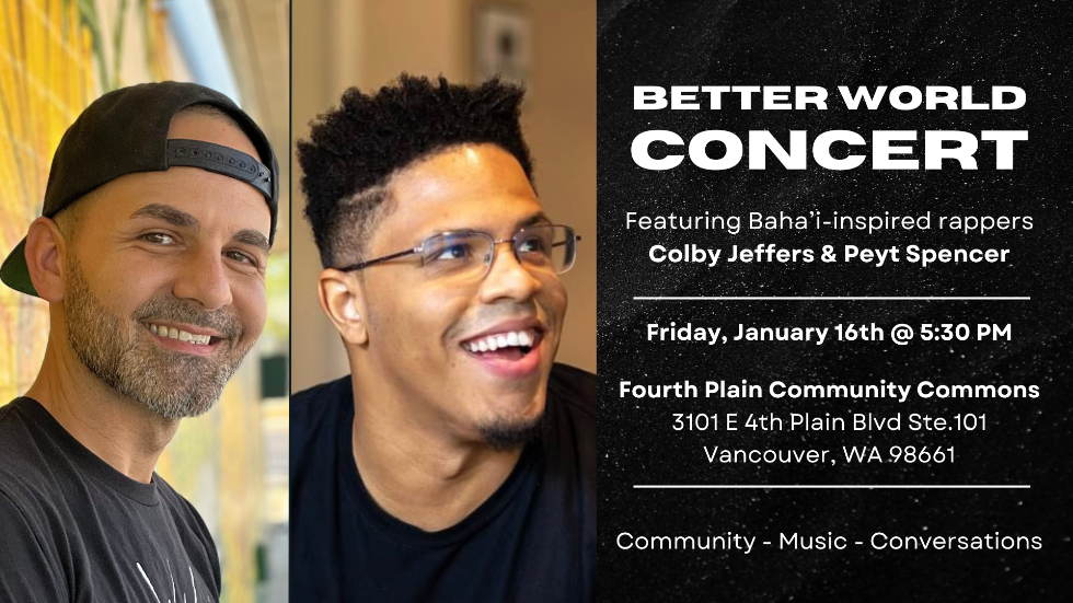 Hosted by Baha'i-inspired, changemaker rappers, Colby Jeffers and Peyt Spencer!