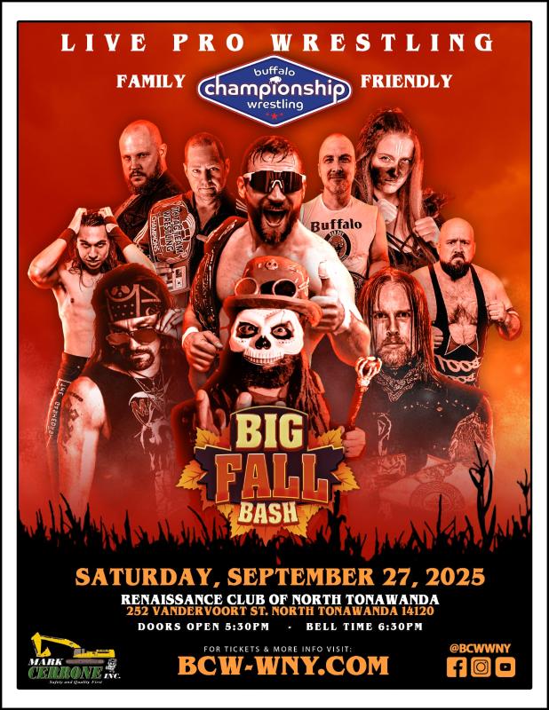 On Saturday, September 27th, 2025 Maggiore Media and Entertainmennt LLC presents Buffalo Championship Wrestling's Big Fall Bash. Join Western New York's Hometown Live Pro Wrestling for a great evening of family-friendly, local and live pro wrestling action!