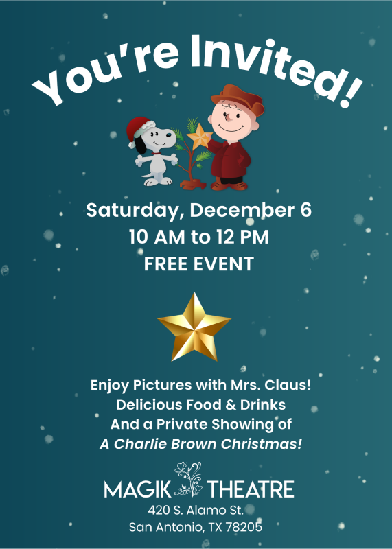 Magik Theatre is hosting a free invite-only performance of A Charlie Brown Christmas on December 6, 2025 at 10 AM. They are inviting the youth that attend Fiesta Youth meetings. The doors open at 10:00 am and the show starts at 11:00 am.