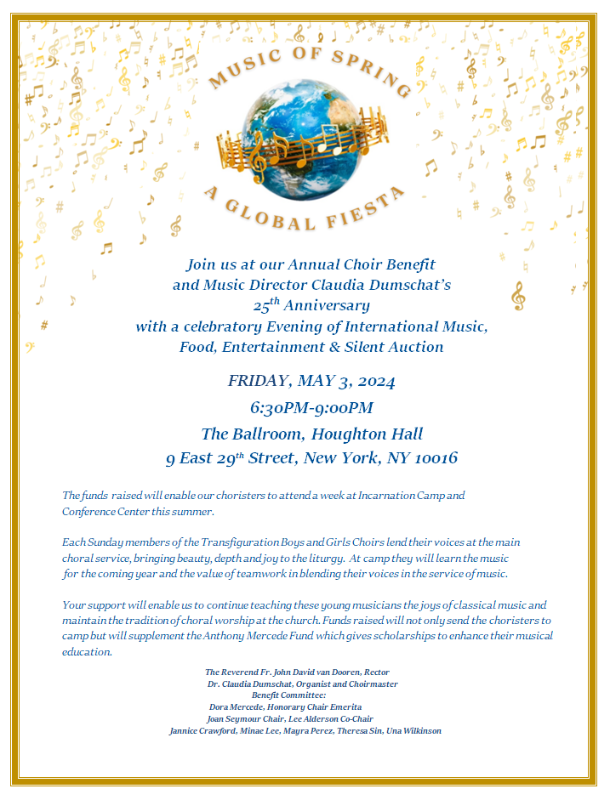 Although, the choir benefit has passed - we are still fundraising. Please make your donation using our Breeze or PayPal sites and put "choir benefit" in the special instructions.