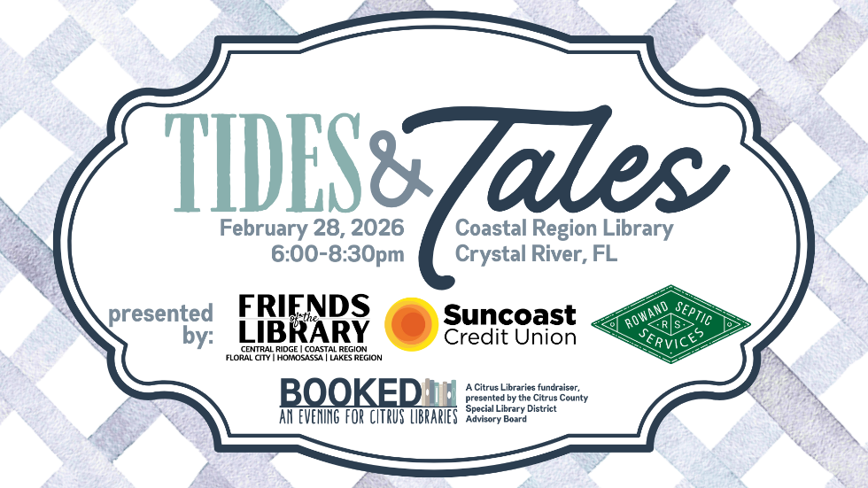 In February 2026 join the Library Advisory Board and Citrus Libraries staff at the newly renovated Coastal Region Library in Crystal River for an evening with friends who love our libraries!