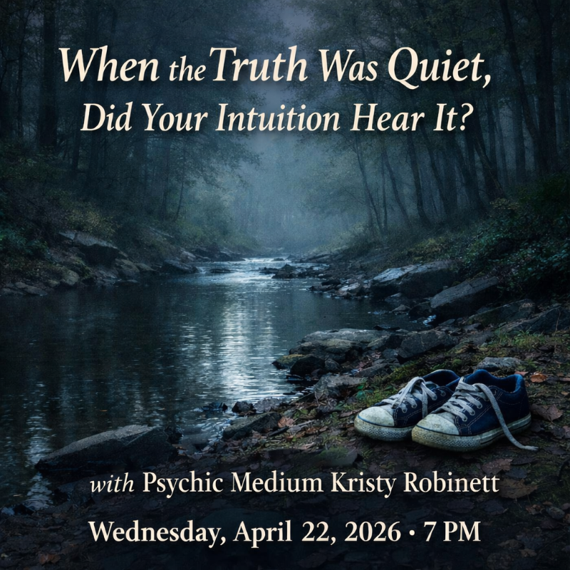 Her interest in true crime began in childhood following an attempted kidnapping, an experience that revealed how her intuitive impressions often mirrored real-world events. For more than two decades, Kristy has worked with clients and audiences to explore how intuition intersects with truth, while maintaining deep respect for victims and their stories.