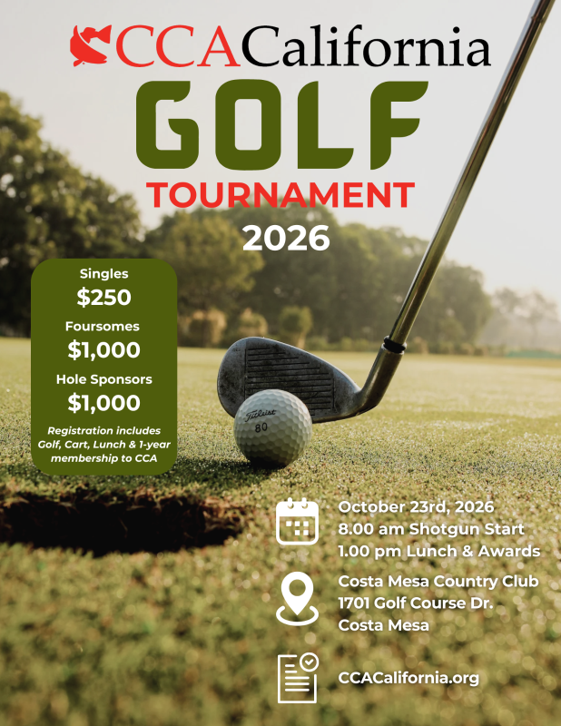 Join the CCA Orange County Chapter at the 6th Annual Golf Tournament at the Costa Mesa Country Club on October 23rd! Singles, Foursomes and hole sponsorships are all available!