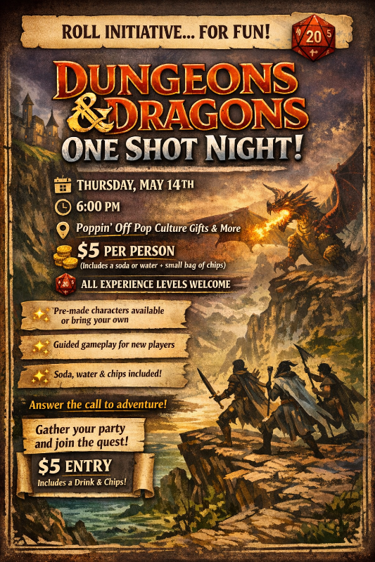Gather your party and answer the call—your quest begins at Poppin’ Off. 🐉🔥