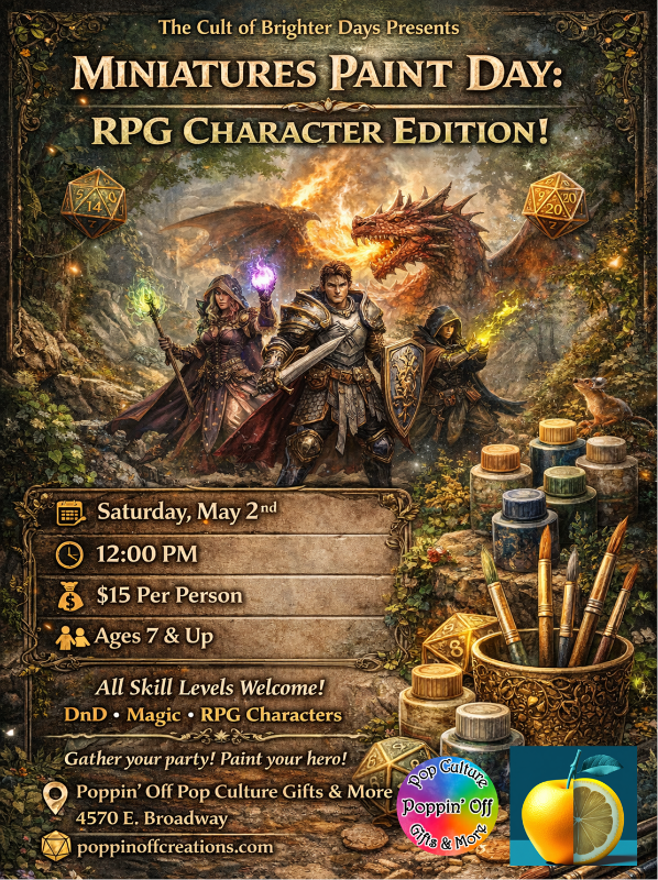 Calling all adventurers, spellcasters, and dice rollers! The Cult of Brighter Days is back at Poppin’ Off Pop Culture Gifts & More—and this time, your favorite RPG characters take center stage.