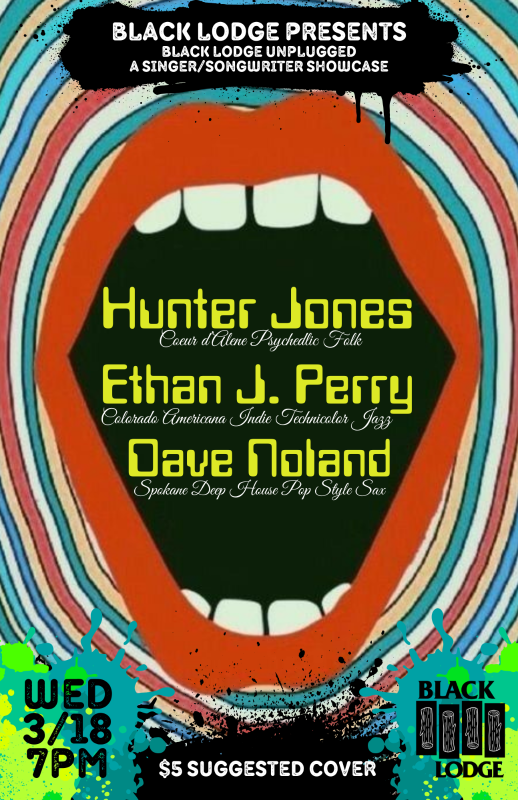 Join us for another spectacular Black Lodge Unplugged: A singer-songwriter showcase. The amount of truly talented individuals in this area never ceases to amaze us, and we are fortunate enough to have a stage they can showcase their incredible art. For March we have the distinct pleasure of bringing you Hunter Jones of The Wow Wows, with his super fun and folky stripped down version of amazing psych-rock songwriting and storytelling. We have Ethan J. Perry who describes thier sound as Americana Indie Technicolor Jazz, and we'd say we have to agree. Folky, Indie, melodic chaos, but never feeling out of control, truly fantastic! And Dave Noland of RCA and the Radicals bringing some funky electro jazz, his sound is incredibly smooth and unbelieveably unique. You will not want to miss this showcase.