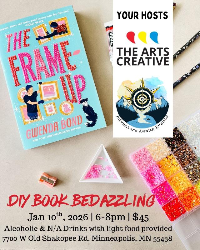 Join us for a cozy and creative evening of DIY book bedazzling on January 10th, 2026, from 6–8 PM, hosted by The Arts Creative and Adventure Awaits Events. Bring your favorite book and transform it into a sparkling masterpiece with provided materials and guidance.
