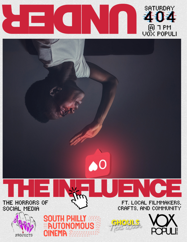 A screening where the horrors of social media are explored through independent short horror films co-presented with Dusky Projects and the Ghouls Next Door. Films are followed by IRL activities to bring us off screen and into the room. It’s not enough to touch grass anymore, let’s connect to each other and make art! Contribute to our “Live Feed,” make your own #OOTD or join in on the Group Chat. TTYL!