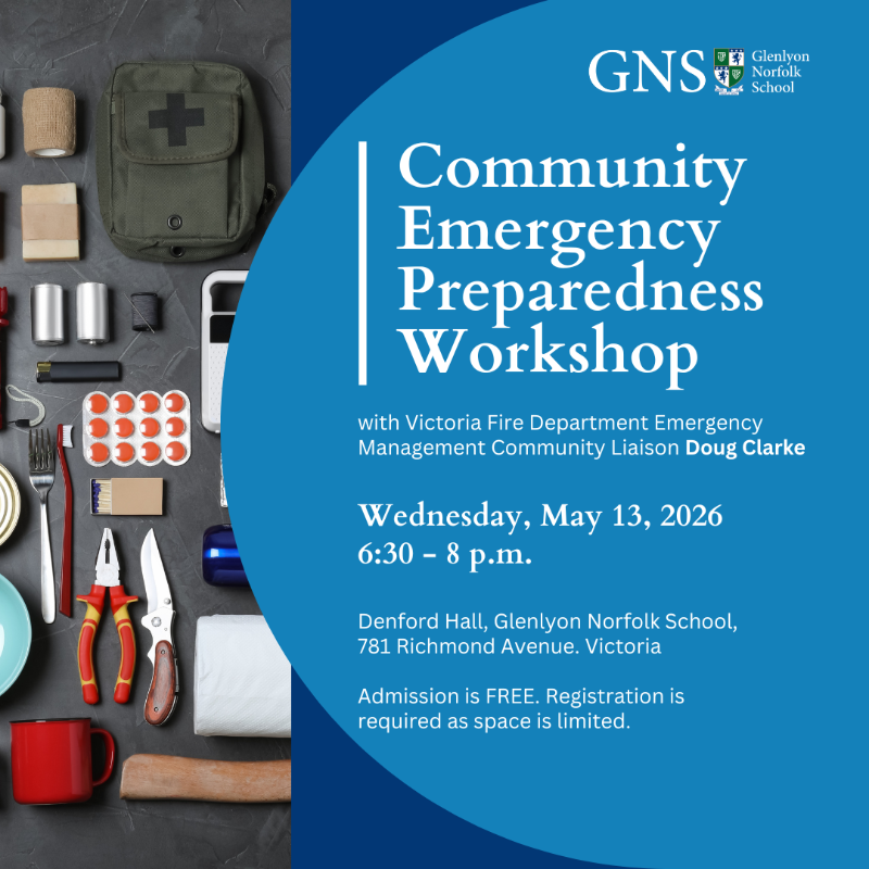 Join us for a free community service event hosted by Glenlyon Norfolk School, featuring the Victoria Fire Department’s Emergency Management Liaison, Doug Clarke.