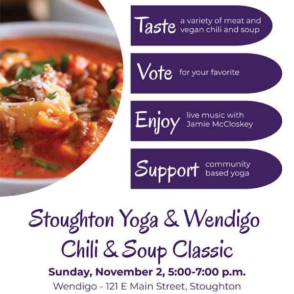 Stoughton organizations and businesses will compete for your vote for best chili or soup. At 6:00 p.m. voting will end, and the winner will be announced.