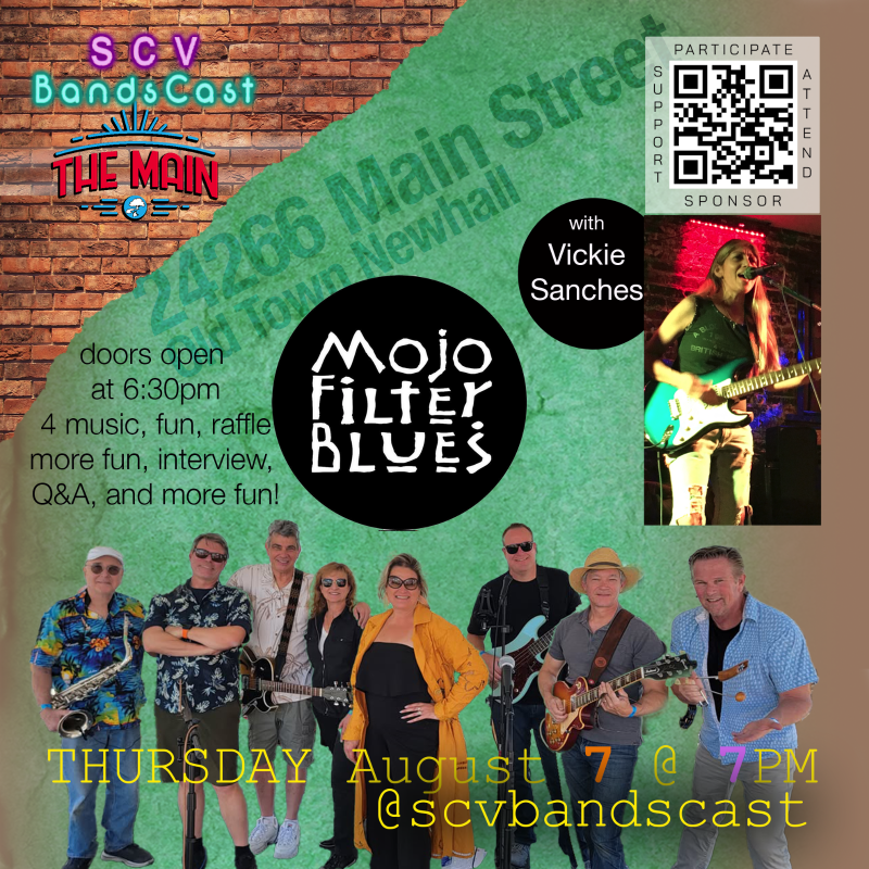 SCV BandsCast At The Main is proud to present Mojo Filter Blues with openening performer Vickie Sanchez. Doors open at 6:30pm