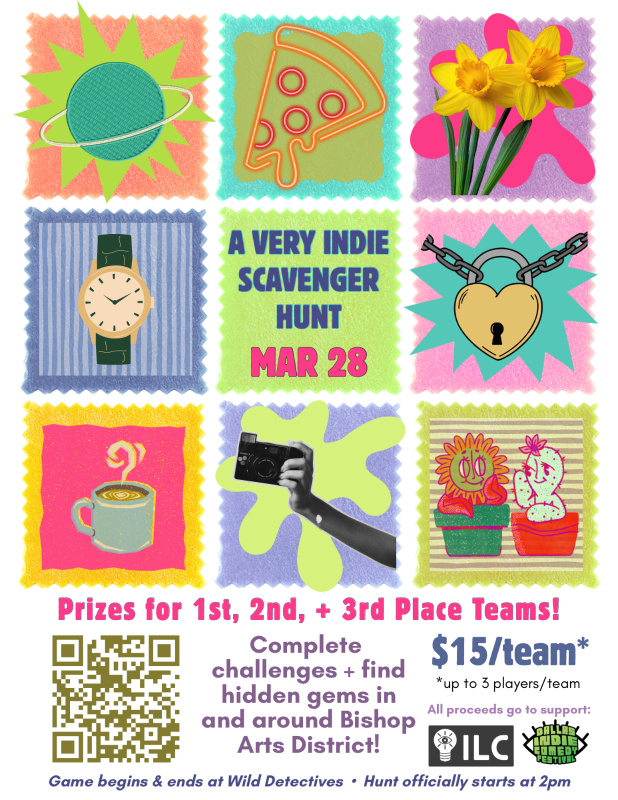 Get ready to explore, laugh, and compete your way through one of Dallas’ most colorful neighborhoods- and the home of Dallas Indie Comedy Fest 2026! A Very Indie Scavenger Hunt is a playful race through the streets of Bishop Arts District and is by the Indie Lab Creative team, producers of Dallas Indie Comedy Fest.