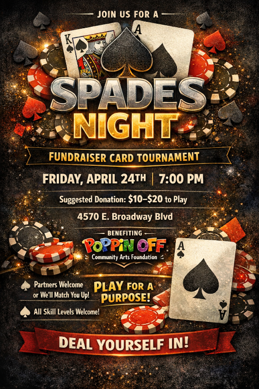 #PoppinOff #SpadesTournament #GameNightForACause #SupportLocalArts #CommunityGameNight #TucsonEvents